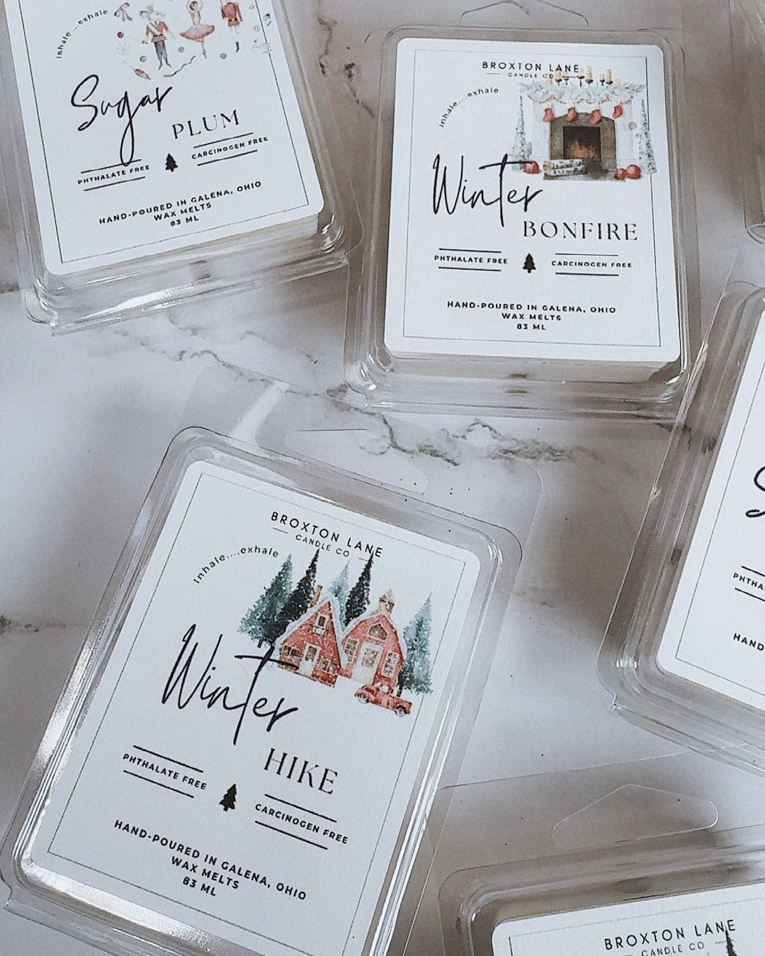 Our 2.7 oz wax melts fill your home with the comforting aromas of the season—think crackling fires, fresh pine, sweet vanilla, and a hint of holiday spice. Made with high-quality, non-toxic wax and premium fragrance oils, they deliver long-lasting fragrance without the flame.